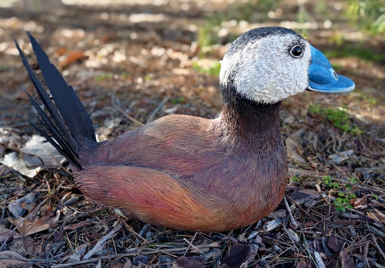 Figura de Malvasía cabeciblanca a tamaño natural y acabado realista.