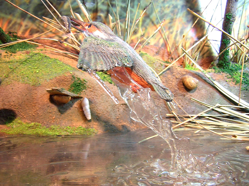 Figura de Martín pescador a tamaño natural y acabado realista.