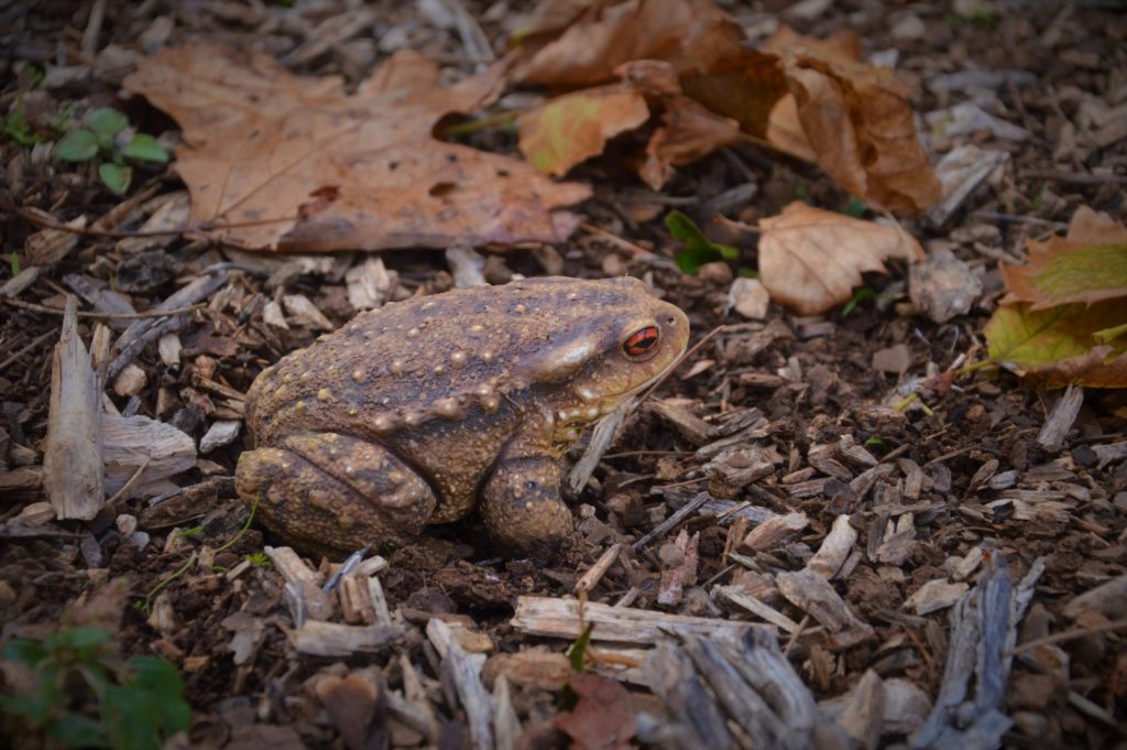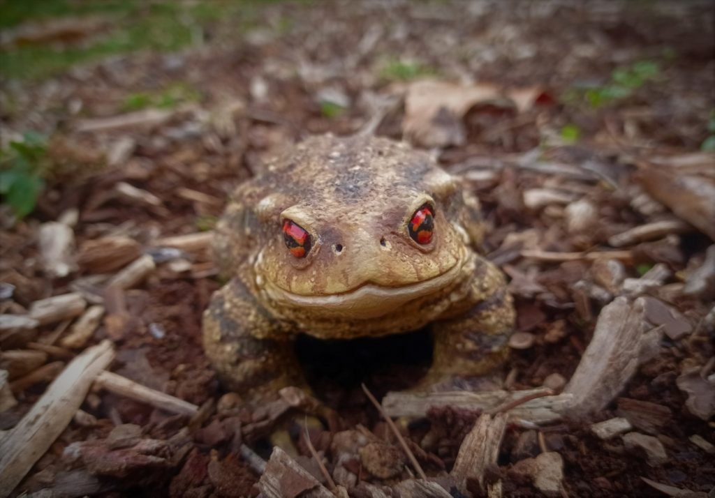 Figura de sapo común a tamaño natural y acabado realista.